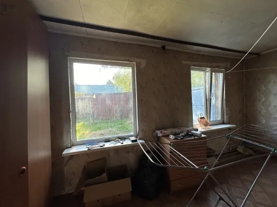 ПЛАНИРОВКА И РЕМОНТ. Дом площадью 46 квадратных метра. Две раздельных комнаты. Ремонт косметический. Установлены пластиковые окна, что гарантирует шумоизоляцию и благоприятный температурный режим в любое время года. Положен линолеум. В доме выровнены стены и пол. Установлены приборы учета расхода электроэнергии. Отопление печное.