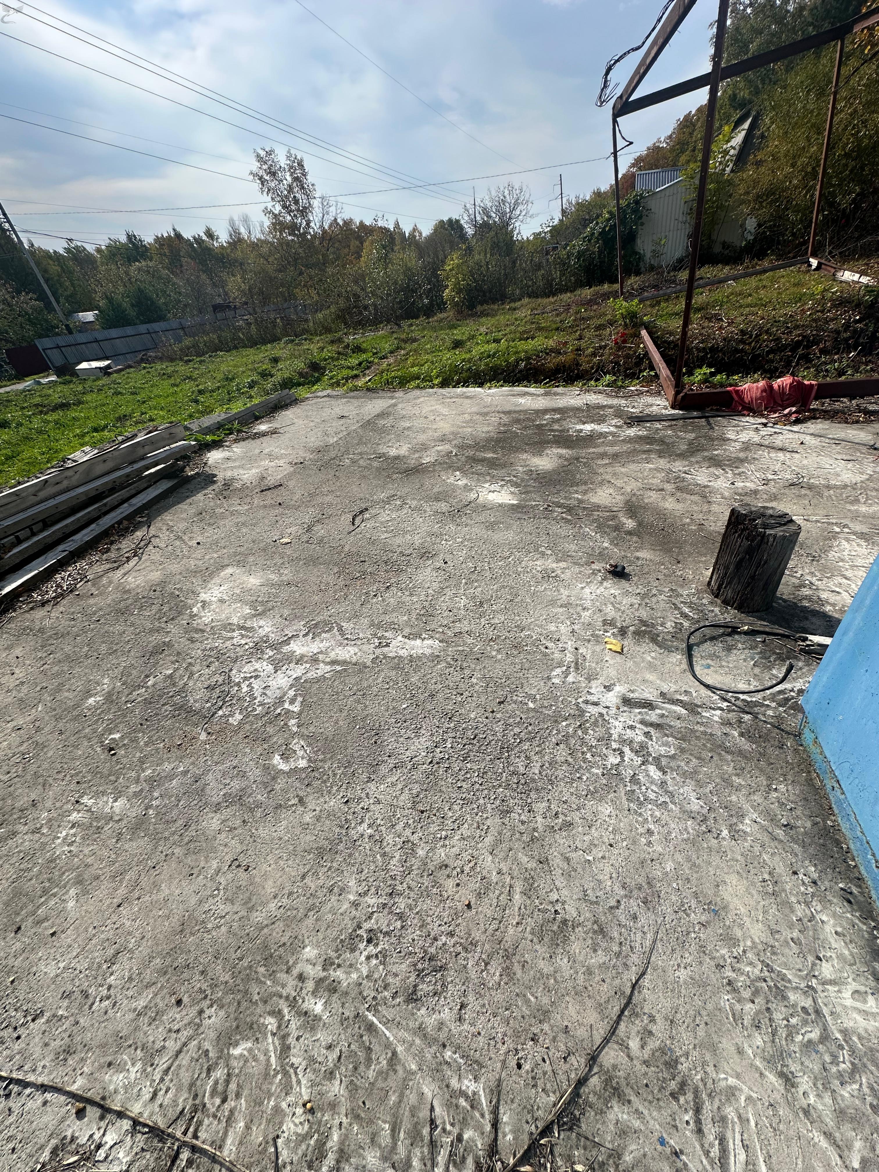 В вашем распоряжении имеется прочный плитный фундамент высотой 40см и размером 6х6 метров, который готов принять любой проект индивидуального жилища по вашему вкусу и предпочтениям. Также здесь есть сарай размером 2х2 метра. Дополнительно предоставляется удобный металлический контейнер, предназначенный для безопасного хранения инструментов или личных вещей.